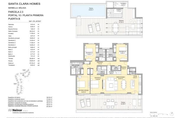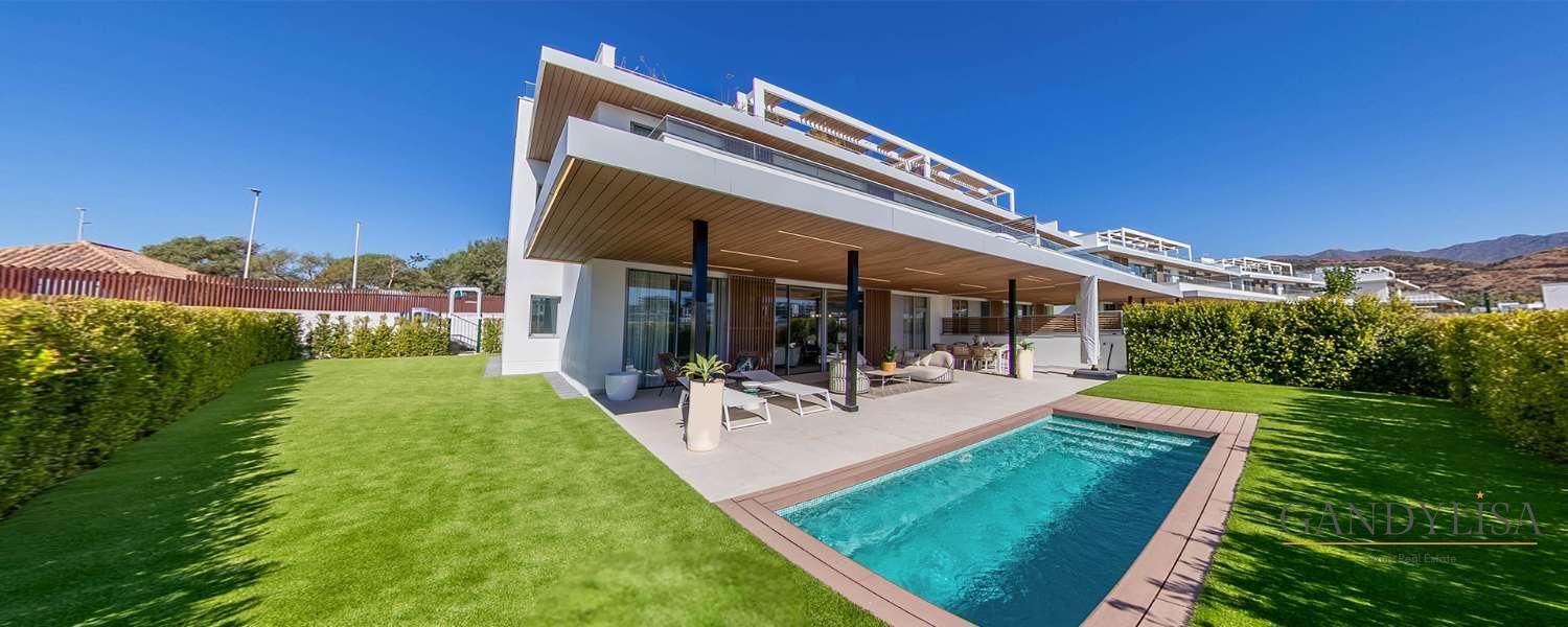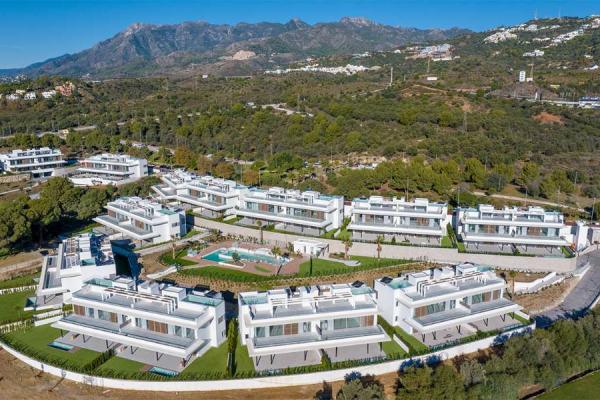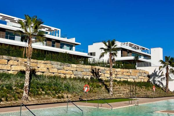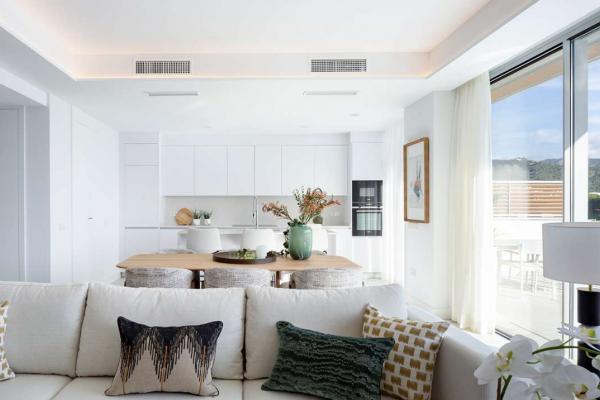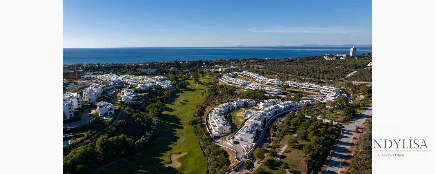 Cerca del campo de golf "Santa Clara Golf Marbella", apartamentos de 3 a 4 dormitorios en la nueva promoción "Santa Clara Homes". Los apartamentos impresionan con materiales de alta calidad, amplios ventanales y detalles como la iluminación integrada en la cocina totalmente equipada.