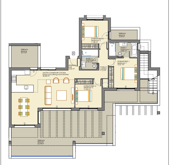 Este residencial cuenta con 70 viviendas de 1, 2 y 3 dormitorios con amplias terrazas repartidas en 7 bloques distintos. El recinto tiene instalación de seguridad, gracias a un control de acceso a través de garita de seguridad y un circuito cerrado de cámaras de vídeo.