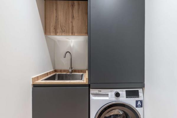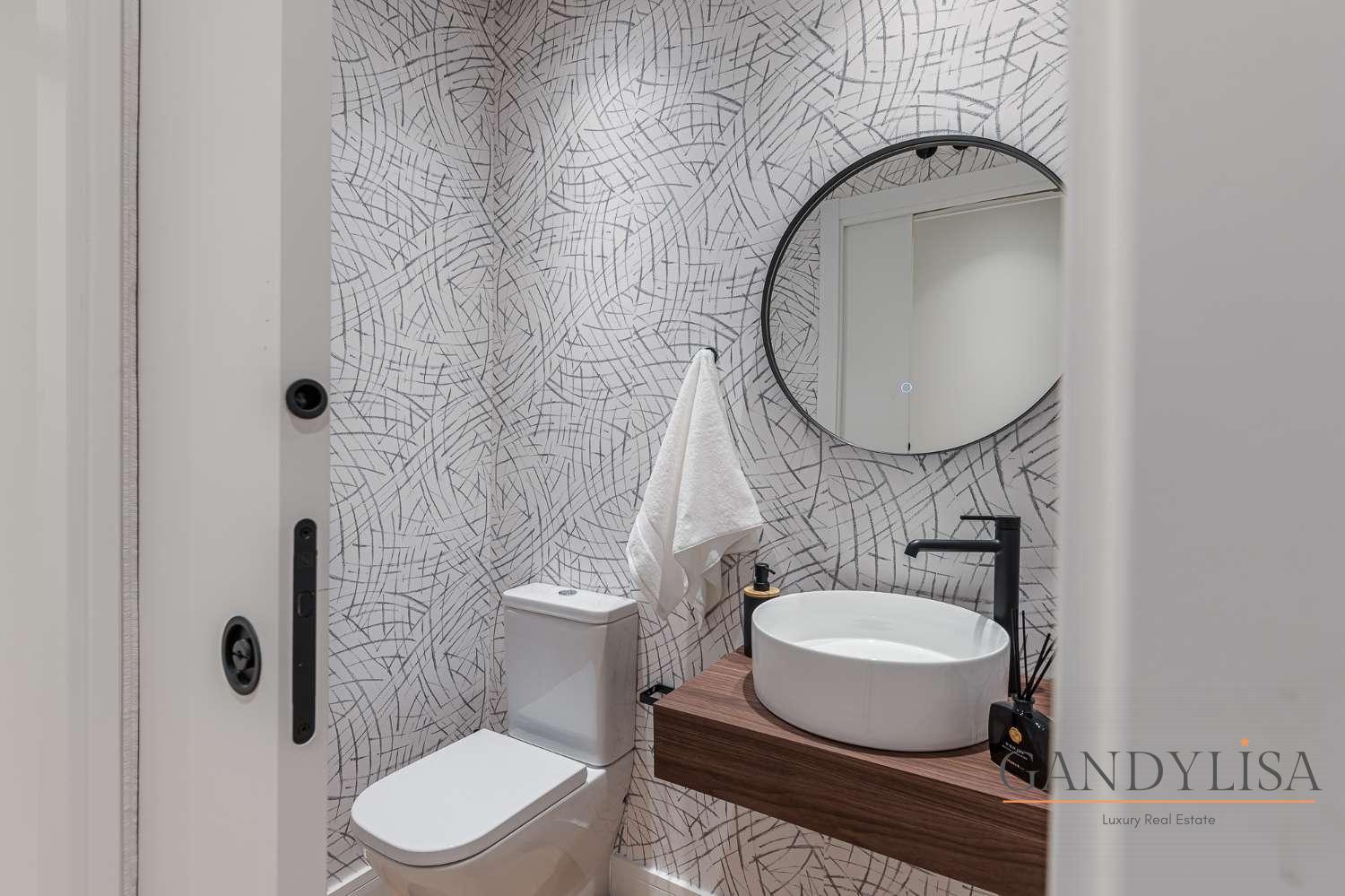 La cocina, de diseño moderno, queda perfectamente integrada en este espacio, ofreciendo funcionalidad y estilo. Además, la vivienda cuenta con un práctico aseo de cortesía y una zona de lavandería discreta y funcional.