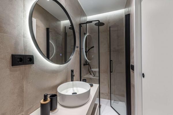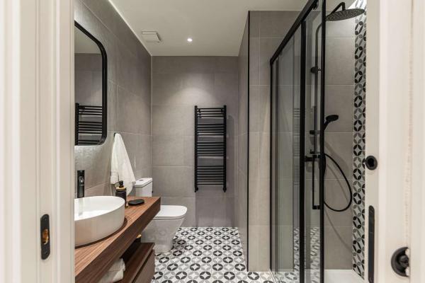 Las áreas sociales son espectaculares, pensadas como un verdadero punto de encuentro. El acogedor salón y el comedor se integran en un diseño que juega con contrastes y transparencias, conectando con la energía de la ciudad. La luz natural inunda el espacio gracias a sus tres balcones a la calle. Las ventanas cuentan con doble acristalamiento, lo que garantiza un excelente aislamiento acústico frente al bullicio del centro de Madrid.