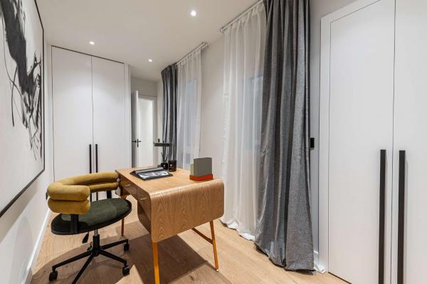 En la zona de descanso, encontrarás una espaciosa habitación principal con baño en suite, un segundo dormitorio que también cuenta con su propio baño en suite, y un despacho funcional con buen espacio de almacenaje.